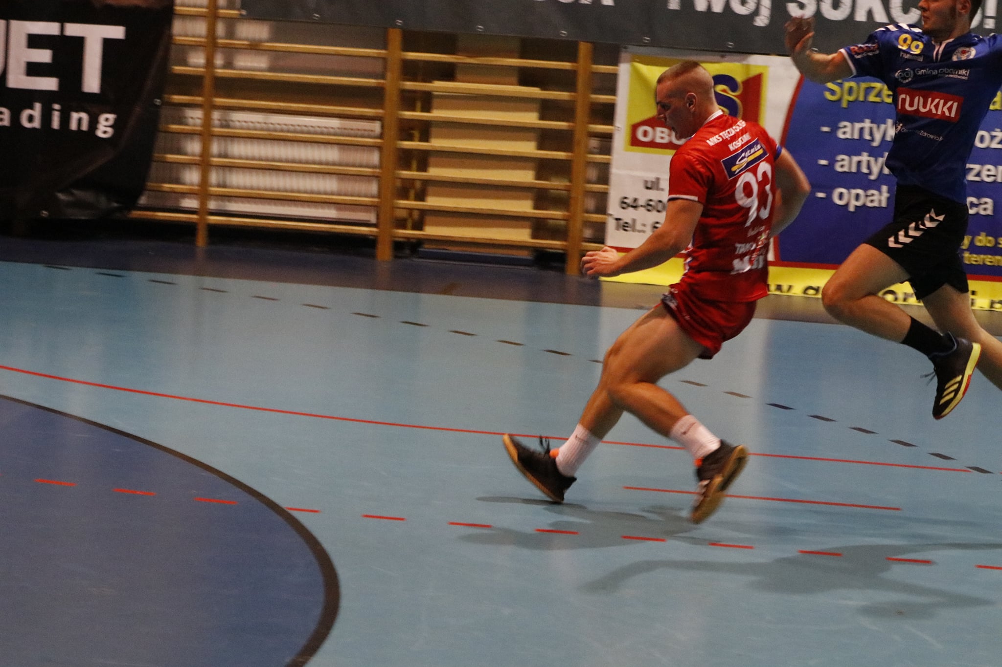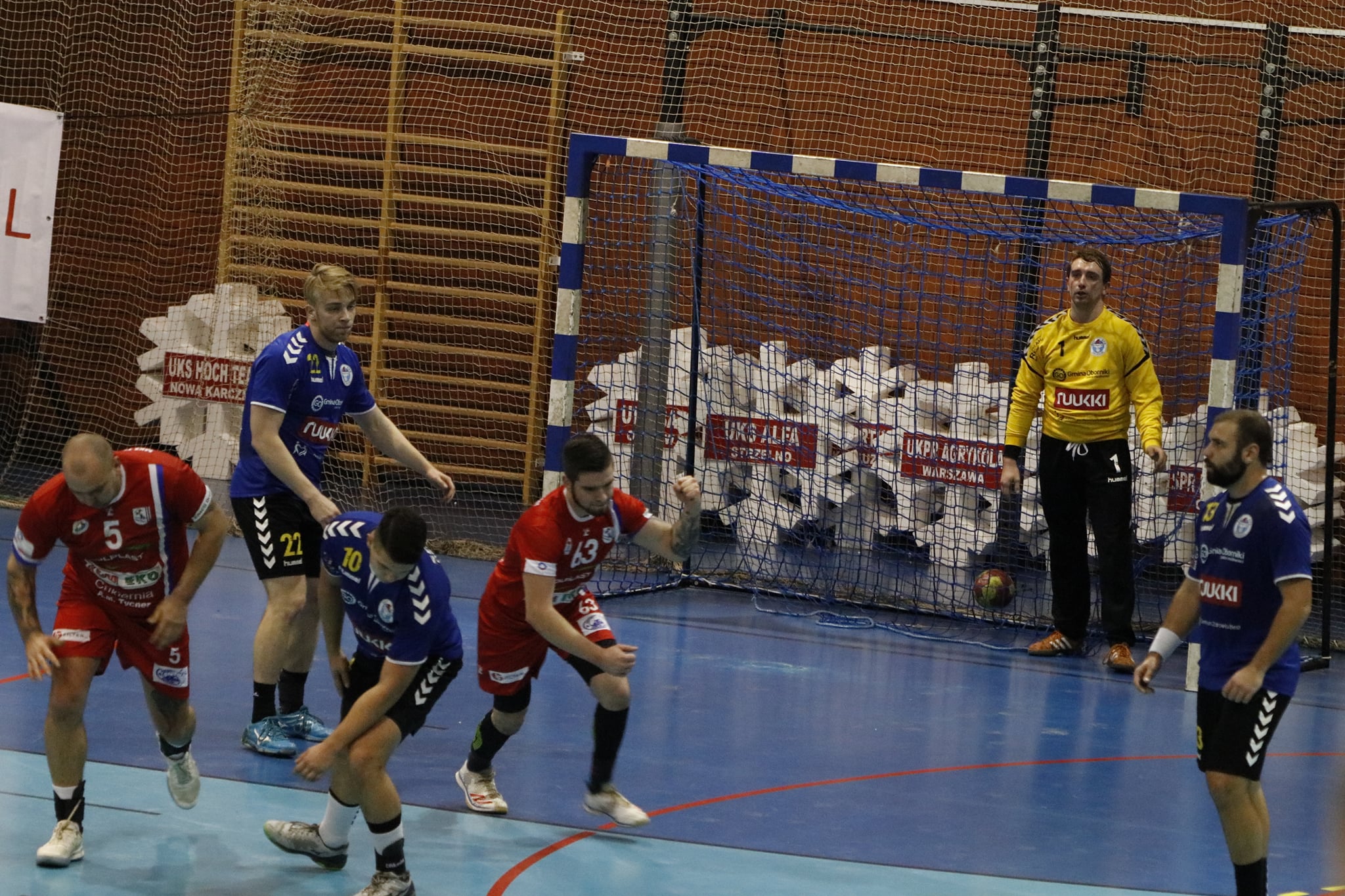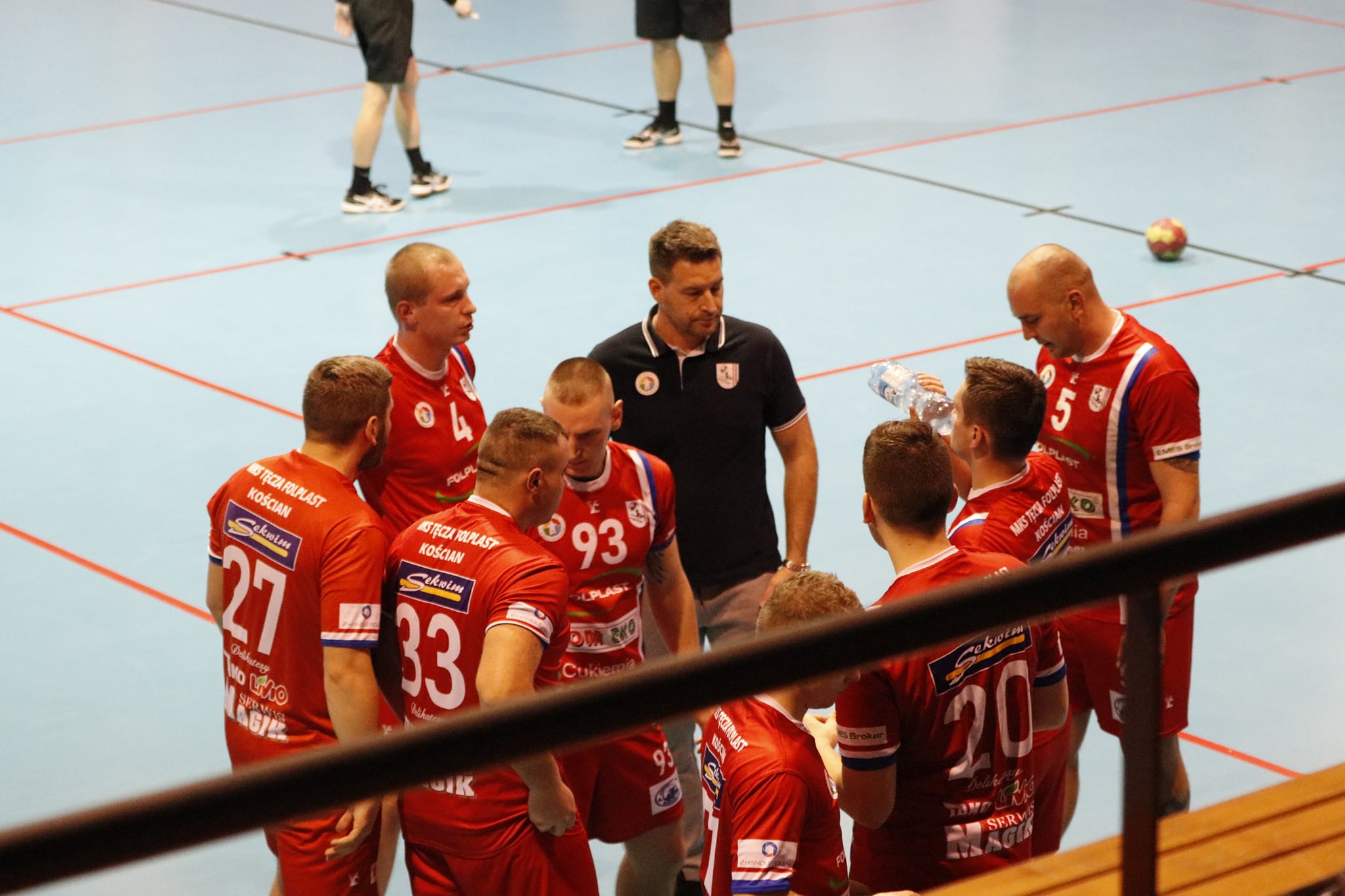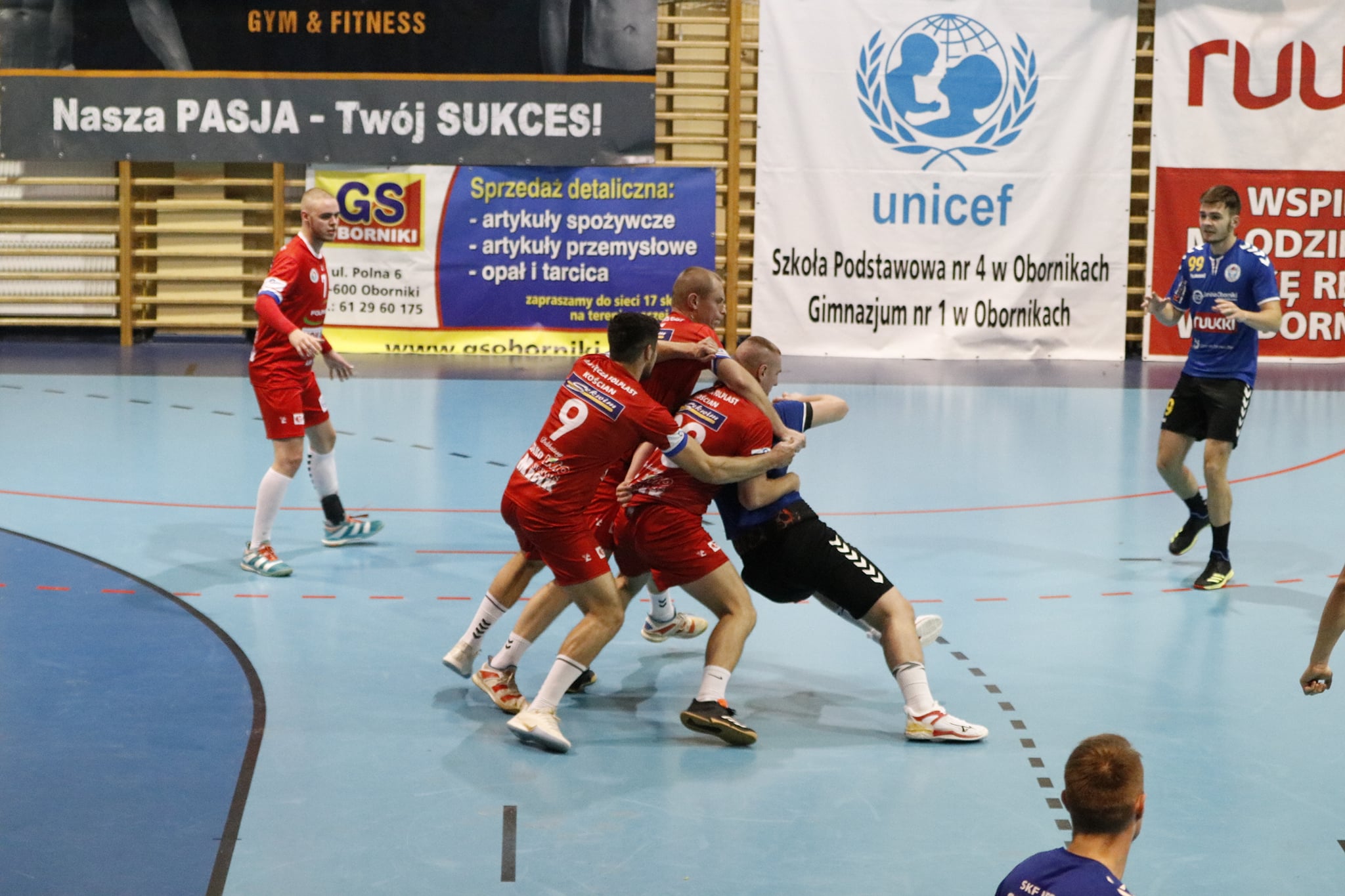 Przy dużym wsparciu z trybun mecz doskonale rozpoczęli nasi, którzy szczelnie zamurowali bramkę i nie pozwolili gospodarzom na bramkę z gry aż do 13 minuty! Gdyby nie bramka z karnego, wygrywalibyśmy tę część meczu 6:0! Wspaniała postawa w tej połowie zaowocowała powiększeniem przewagi aż do 8 bramek! Aby uzmysłowić jak znakomicie funkcjonowała obrona tego dnia, powiem tylko tyle, że na 5 zdobytych bramek 3 były z karnych! Czyli tak naprawdę Sparta Oborniki rzuciła przez 30 minut zaledwie 2 bramki!!! Bohaterem zdecydowanie Noskowiak, który będzie się śnił zawodnikom Sparty jeszcze bardzo długo! Na trybunach w sektorze gości prawdziwe święto – Kościańska Hałastra cały mecz na stojąco, a śpiewom i oklaskom nie było końca! Po pierwszej połowie na tablicy wyników 5:13!