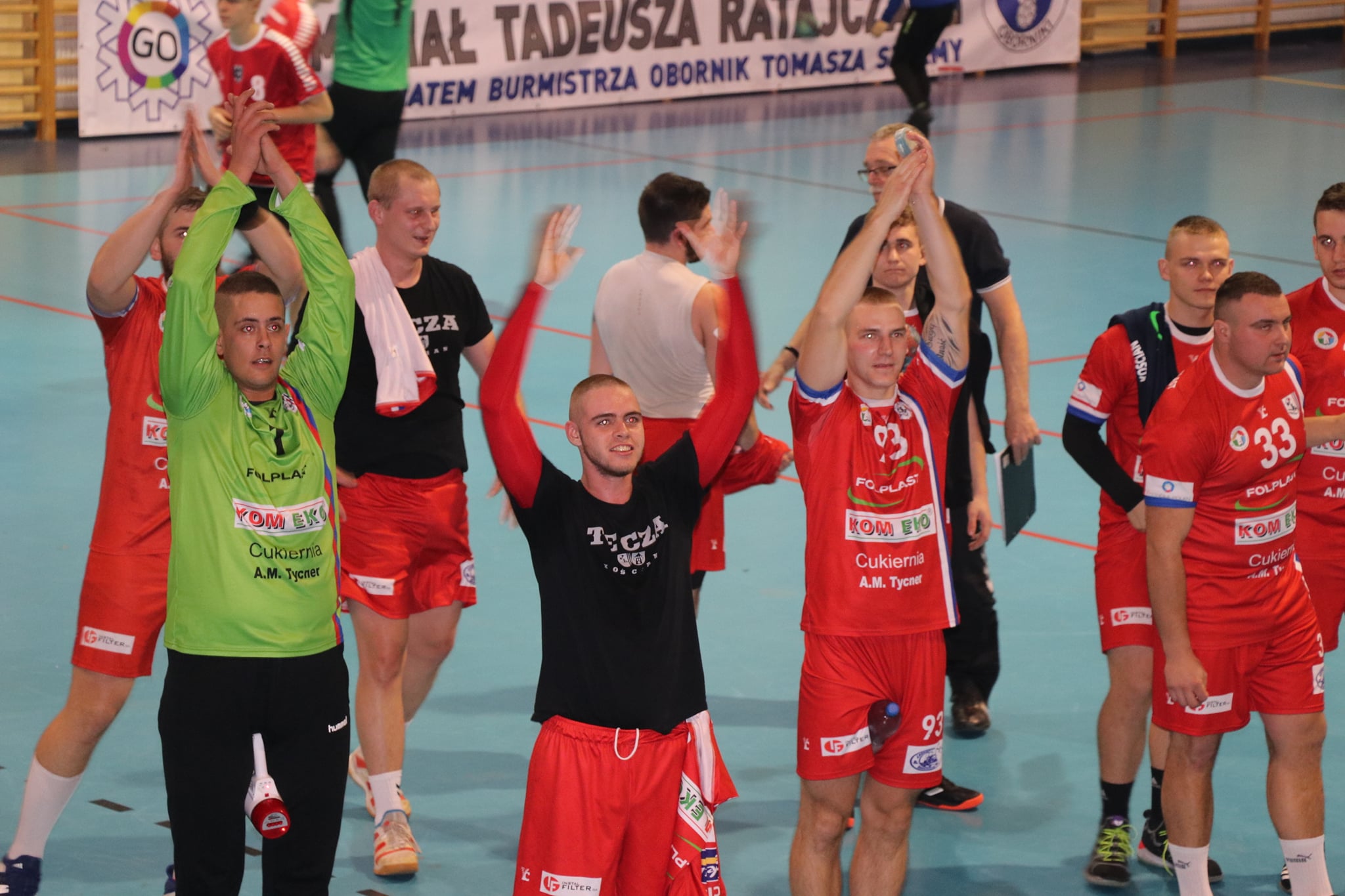 Druga połowa, pomimo fantastycznej przewagi, to pełne skupienie i konsekwentna gra na 100%. Trener Nowak ostrzegał w przerwie, że taki zespół jak Oborniki, może przy dużym szczęściu zniwelować to prowadzenie. Tego dnia na naszych bohaterów nie był mocnych, kolejne obronione rzuty (w tym obronione 3 karne!) skutecznie podcinały skrzydła gospodarzom. Na dobrej skuteczności rzucali Graf, Krystkowiak i Wesołek (łącznie 14 bramek – red.). Końcowy gwizdek i niesamowita radość w naszym zespole! MVP spotkania bezsprzecznie Noskowiak! Na trybunach szał radości! Widać, że mecz w Brzegu (przegrana Tęczy 25:28 – przyp. red.) to był wypadek przy pracy. Ta drużyna ma potencjał i charakter zwycięzcy! Serdecznie zapraszamy już w najbliższą sobotę, na zaległy mecz XII kolejki! A po meczu podsumowanie rundy i zaproszenie na drugą część rozgrywek!