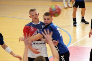 Początek meczu należał do gospodarzy, którzy pomiędzy 10 a 16 minutą rzucili 6 bramek, tracąc zaledwie jedną z karnego. Bardzo dobrze wszedł w mecz Jędrzej Kaniewski, który raz za razem rzucał bramkę! Do końca pierwszej połowy kościaniacy utrzymali przewagę i wynik po 30 minutach 13:8.