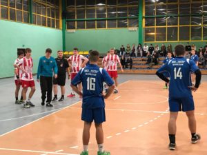 Mecz lepiej rozpoczęła drużyna Tęczy – dobra gra w obronie, wysoka skuteczność w bramce oraz postawa dwóch młodszych zawodników (Dziubała i Owczarczak) pozwoliła wyjść nawet na 3 bramkowe prowadzenie (6:3 w 10 minucie). Trener Maćkowski uczulał swoich zawodników na utrzymanie koncentracji i przyniosło to oczekiwany skutek – po pierwszej połowie to Tęcza prowadziła 13:11. Warto zaznaczyć tutaj dobrą postawę w bramce Zaremby, który pozwolił Ostrovii na zaledwie jedną bramkę z karnego (na 4 przyznane)!